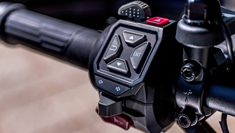 DS900X išsiskiria aukšto lygio įranga: reguliuojama pakaba, pažangios elektroninės pagalbos sistemos, važiavimo režimai ir traukos kontrolė leidžia motociklą pritaikyti skirtingiems paviršiams ir važiavimo stiliams. Didelis TFT ekranas, „Full LED“ apšvietimas, apsauginiai lankai ir ergonomiška vairuotojo pozicija suteikia komfortą ir saugumą net ilgiausiose kelionėse.